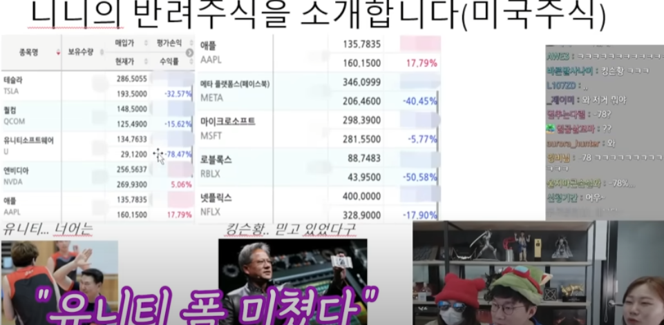 하지만 테슬라와 유니티, 그리고 로블록스는 아직도 마이너스를 차지하고 있을 것이다.