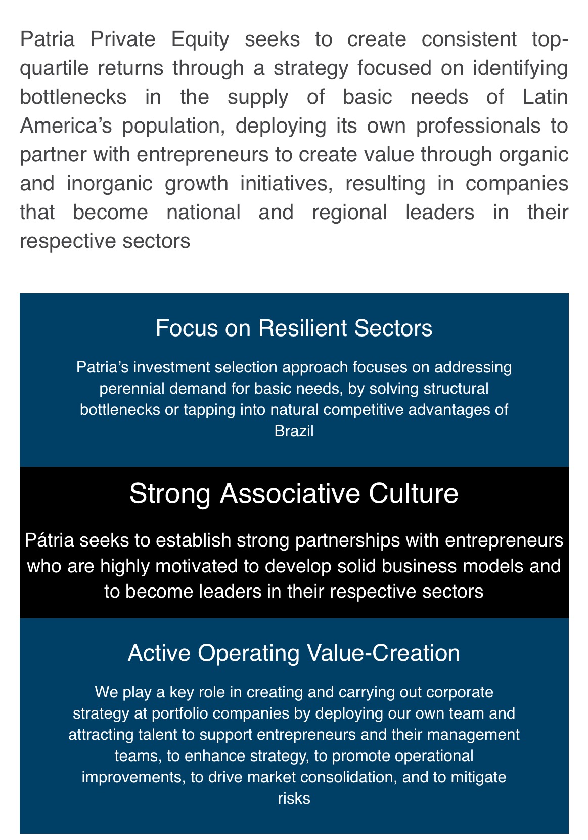 PAX는 전반적으로 가장 핵심적인 인프라에 대해 개발 및 관여하고 있으며 라틴 아메리카의 성장과 인구의 증가에 따라 중장기적인 성장 플랜에 따른 인프라 및 각종 자본 투입과 현지의 사업가들과 깊은 관계를 맺고 있습니다. 때문에 브라직과 라틴 아메리카의 성장에 투자하는 방법중에 하나가 PAX를 투자하는 것이라 믿습니다.