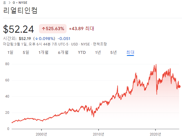20년간 시세 차익도 꾸준히 부여해 왔으며, 배당 수익률도 꾸준히 늘려온 이력이 있기 때문에, 리얼티 인컴은 지금 같은 시기에 매수해 놓으면 황금알을 낳는 거위가 되어 당신의 생활을 윤택하게 해 줄 것이다.