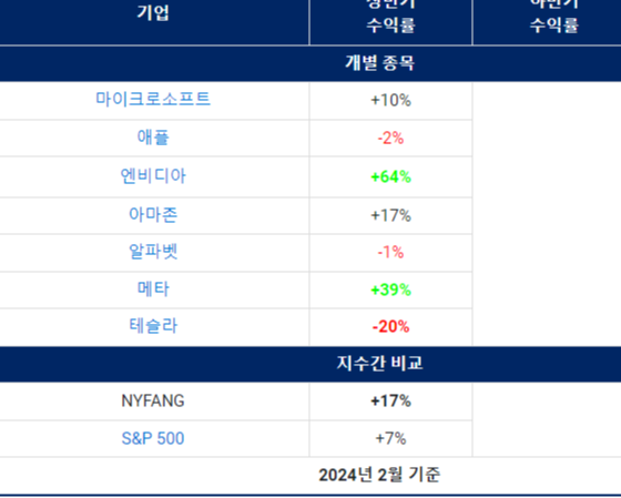 마그니피센트 7이라 불리는 7가지 종목의 상반기 수익률