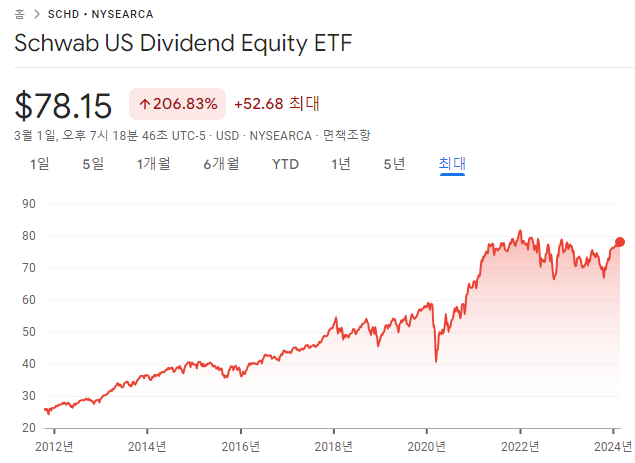 이제, 저평가된 영역은 아니지만 가장 방어력이 뛰어난 배당주들 모음으로, 지키는 자산과 배당성장에 투자하고 싶은 사람에게 제일 유명한 것은 SCHD 일 것이다. 지키는 투자로 자산을 헤지하고, 장기적인 성장과 배당을 같이 투자하고 싶은 사람에게는 가장 훌륭한 피난처가 될 수 있을 것이다. 그러나 성장률에서는 QQQ만 못하고, 배당에서는 O만큼 높지 않은 부분에서는 다소 아쉬운 부분이 있다고 할 것이다.