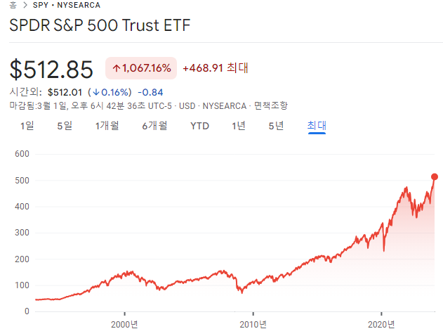 2000년도 IT 버블이 터졌을 때에도 SPY는 149usd 에서 90 usd로 35% 하락한 수준에서 점차 주가를 회복했다. 안정성과 회복탄력성 측면에서는 SPY를 이길 수 있는 투자는 별로 없을 것이다. 다만, 수익률은 QQQ나 aapl을 직접 투자한 것에 비해서는 아쉬운 부분이 있다는 것은 분명하므로, 두 가지를 적절히 섞어서 투자하는 것을 추천한다.