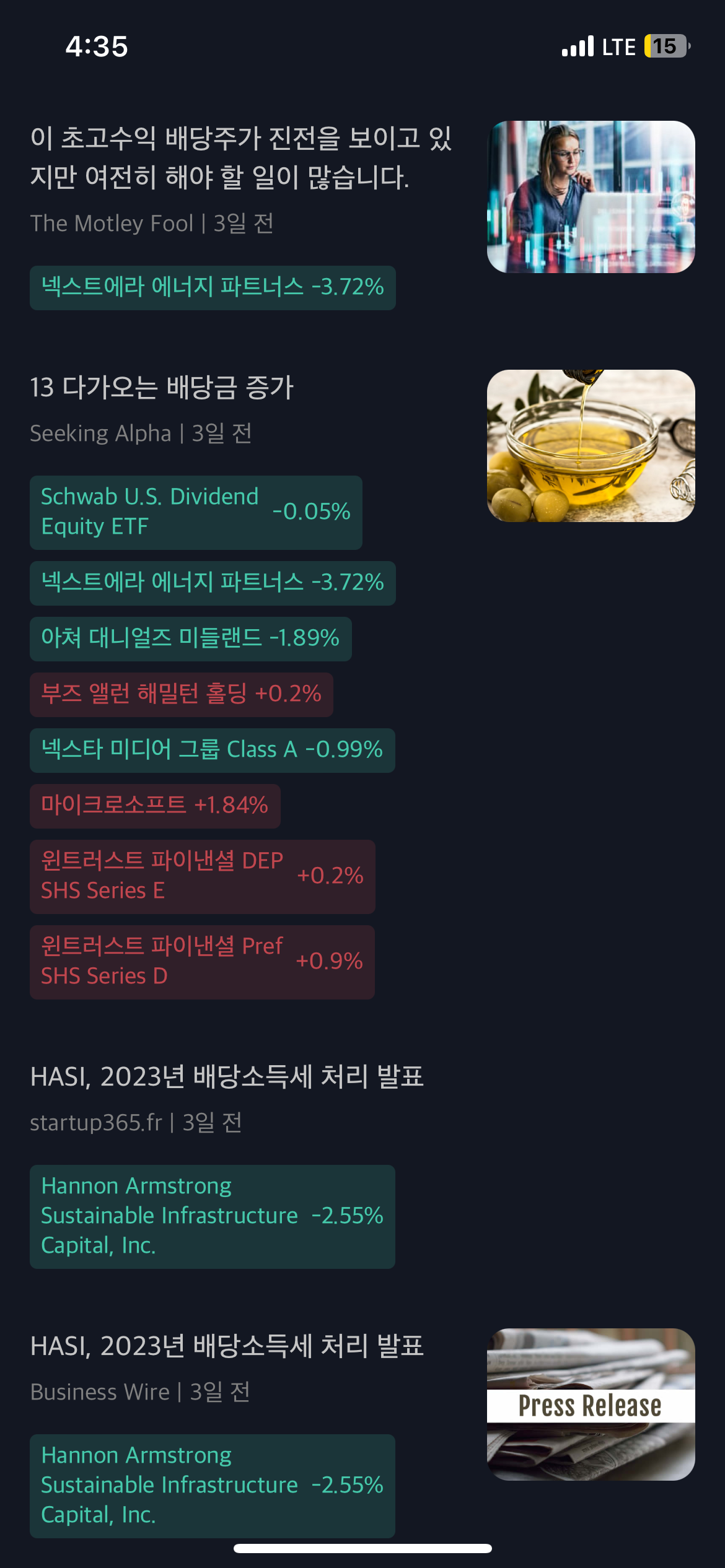 그리고, 무엇보다, 인프라나 꼭 필요한 산업을 리서치할 때, 비슷한 성격의 주식들을 더 리치 뉴스를 통해 추천을 받을 수 있는데, 관련회사의 배당 기록과 주가 상승 기록을 체크해 봄으로써, 해당 회사를 투자하기에 적절한 시점인지 아닌지를 판단할 수 있다.