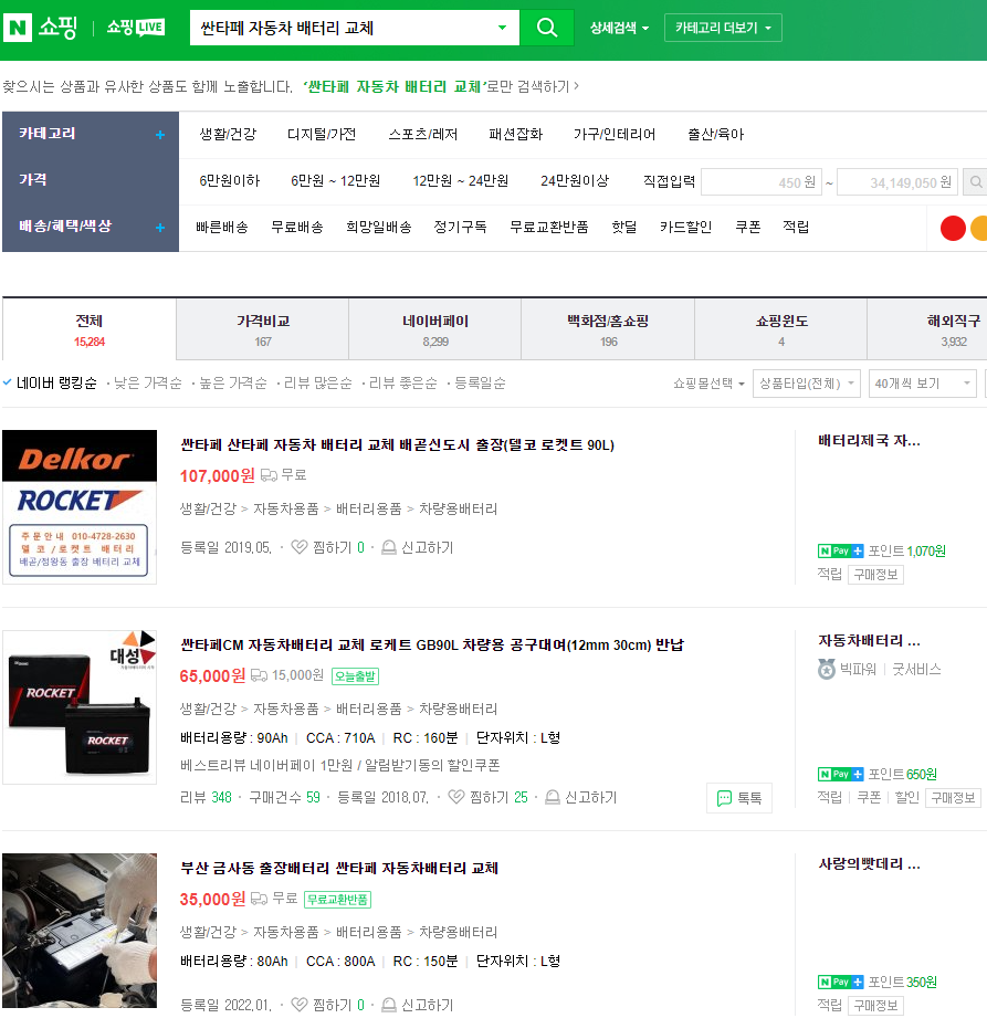 위와 같이 자기가 해당하는 자동차 배터리 교체를 검색한 다음, 출장 서비스를 받으면 된다.